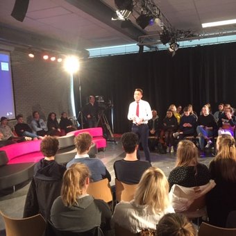 3 19 maart ging de Debatshow toch door op het Mediacollege Amsterdam (Ma). Op maandag 18 maart waren alle verkiezingsactiviteiten nog afgelast vanwege de gebeurtenissen in Utrecht. Lijsttrekkers van Groen Links, CDA, D66, Denk en Partij van de Dieren kozen ervoor om in debat te gaan met studenten. Afspraak was wel om elkaar niet te hard aan te vallen.Interactie met studentenTijdens de show kregen studenten en lijsttrekkers stellingen voorgelegd waar direct op gereageerd kon worden. Studenten konden stemmen en de lijsttrekkers mochten hun keuze uitleggen. Daarnaast hadden studenten vragen voorbereid. Ook kregen de lijsttrekkers 45 seconden de tijd om hun ideeën zo helder mogelijk te presenteren.Reacties van partijen consequentTijdens de show kwamen uiteenlopende onderwerpen aan bod. Bijvoorbeeld dat dieren meer rechten zouden moeten krijgen; dat vlees duurder moet worden; dat er meer gedaan moet worden aan het milieu; dat rijkdom evenwichtiger verdeeld moet worden en dat er meer goedkope woningen gebouwd moeten worden. De partijen waren consequent in hun reacties: De partij van de dieren benadrukte dat economische motieven vaak te zwaar wegen; Denk vond dat verwanten in het buitenland vaak de rekening gepresenteerd krijgen van keuzes in Nederland, D66 zag vooral uitdagingen waarvoor creatieve oplossingen gevonden kunnen worden, CDA waarschuwde voor overhaaste ingrepen en pleitte voor meer tijd om goede oplossingen te bedenken en Groen Links vond dat er vooral snel gehandeld moet worden omdat de toekomst van jongeren op het spel staat.Denk wint debatUiteindelijk won Gideon Everduim van Denk de prijs voor de politicus die de ideeën het duidelijkst kon verwoorden. Opvallend, want voorafgaand aan het debat waren Forum voor Democratie en de PVV favoriet onder de studenten. De Debatshow kwam tot stand in samenwerking met De Kern van de Zaak. Deze organisatie wil jongeren die in 2019 voor het eerst mogen stemmen laten zien dat hun stem er echt toe doet. Zij geloven dat als je politiek serieus brengt jongeren het ook serieus nemen. De Debatshow wordt uitgezonden op AT5. Deze samenwerking is een goed voorbeeld van het streven van Ma om maarschappelijk relevante onderwerpen bij het onderwijs te betrekken.