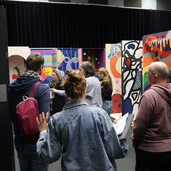 Een aantal van onze studenten ondersteunt bij de workshops en begeleidt de gasten tijdens een rondleiding door de school. Het programma bij MA eindigt met een gezamenlijke lunch, waarna de groep doorreist naar het HMC voor het middagdeel.